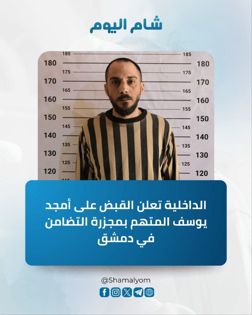 كشفت وزارة الداخلية تفاصيل جديدة حول عملية إلقاء القبض على أمجد يوسف، المتهم بارتكاب مجزرة التضامن في دمشق، مؤكدة أن العملية استغرقت شهوراً من العمل الأمني المتواصل، وجاءت نتيجة متابعة دقيقة وتحقيقات مطوّلة قادت إلى تحديد مكان تواجده في ريف منطقة الغاب بمحافظة حماة.